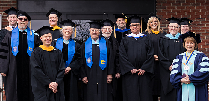 Representatives of the Class of 1969, wearing their blue honor stoles, are pictured here with the commencement platform party. Class of 1969 members from left to right: David Michaud, Anita Campbell, and Eugene Roy. Thank you, David, Anita, and Eugene for joining us as members of the 50th Class! READ MORE