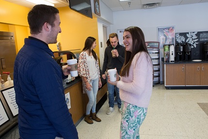 Welcome to the Campus Center, a major hub of activity for our students as well as for the community. The Campus Center houses the Owl’s Nest, which serves as a great spot for games and impromptu open mic sessions, and also features a brand new Starbucks “We Proudly Brew” shop (where you can get Frappuccinos, macchiatos, and lattes, as well as late night food). Also in the building is our Campus Store, mailroom, and UCU banking branch on the first floor and our Kelley Commons dining hall, Alumni Room, and ballroom/multi-purpose room on the second floor.